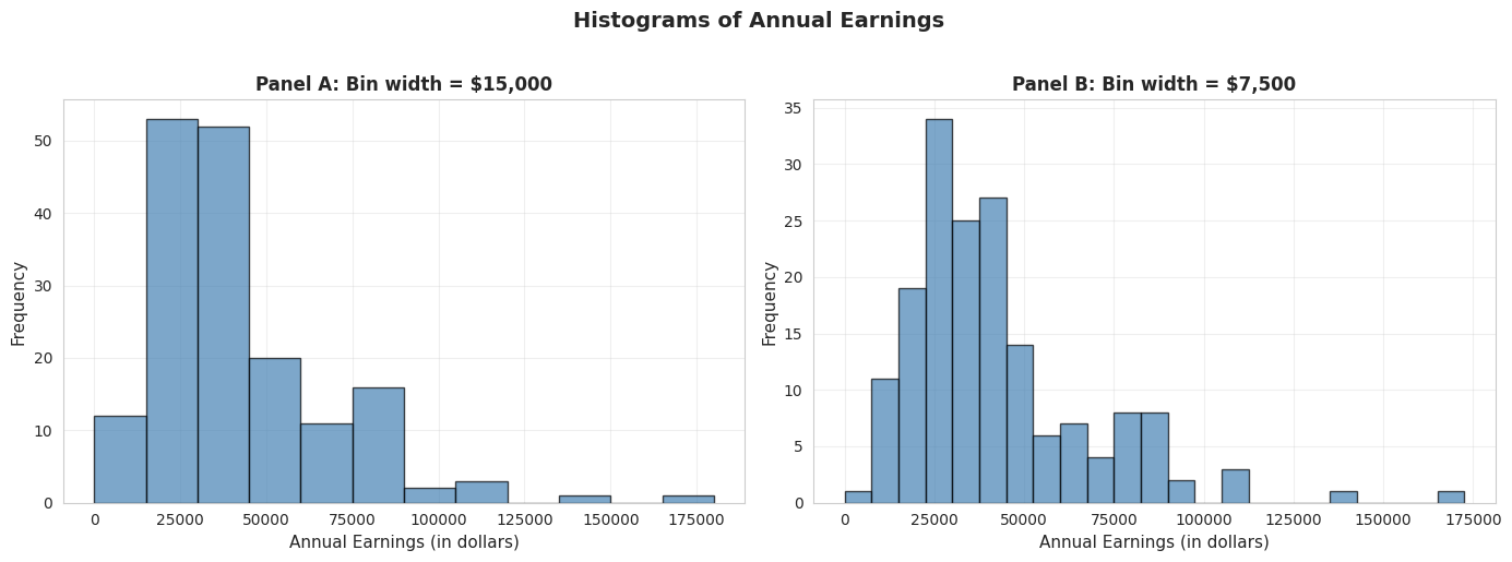 Transition: Now that we’ve calculated summary statistics for earnings data, let’s explore how visualizations can reveal patterns that numbers alone might miss. Charts make distributions, outliers, and trends immediately visible.