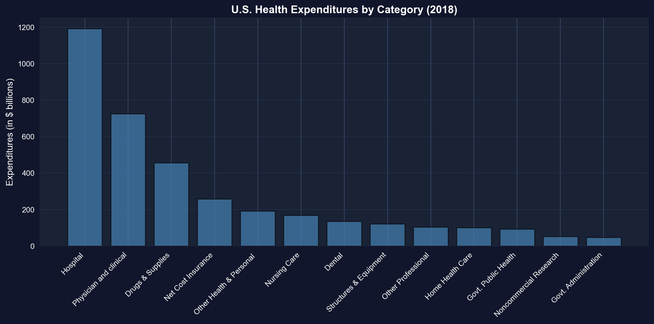 - **AED_HEALTHCATEGORIES.DTA**: U.S. health expenditures by category in 2018