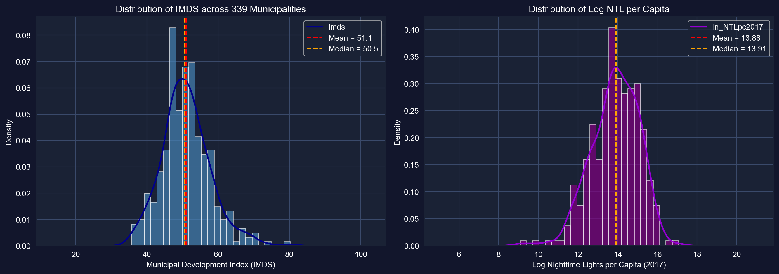 **Connection to future chapters**: In Chapter 4, we'll test whether differences across departments are statistically significant. In Chapter 5, we'll explore *bivariate* relationships between satellite data and development. Later chapters will build progressively more sophisticated models for predicting and explaining municipal development outcomes.