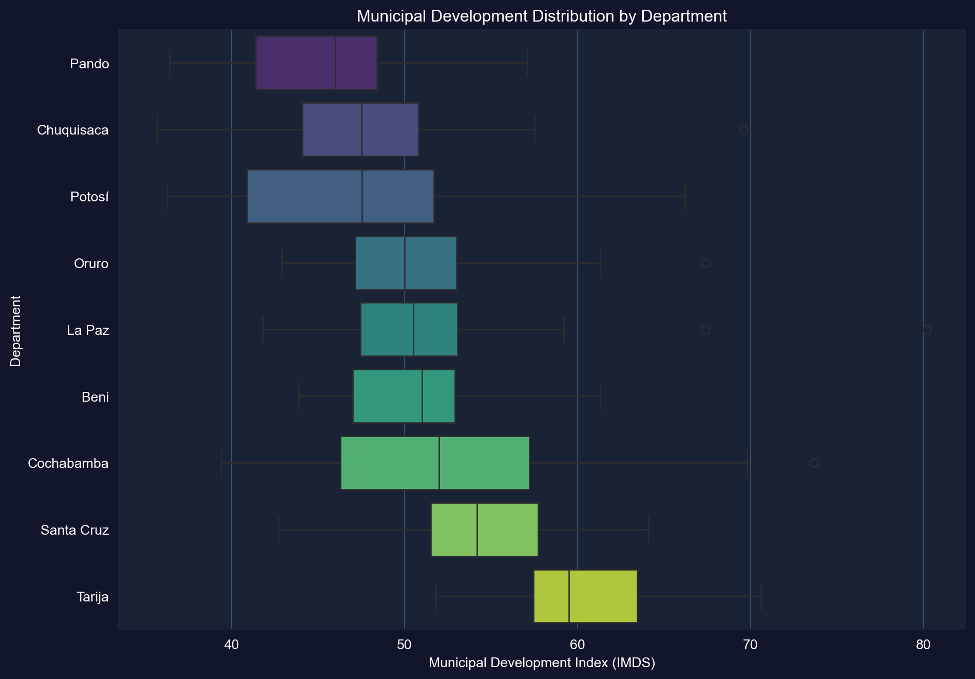 - **Regional comparison** of development distributions across Bolivia's 9 departments