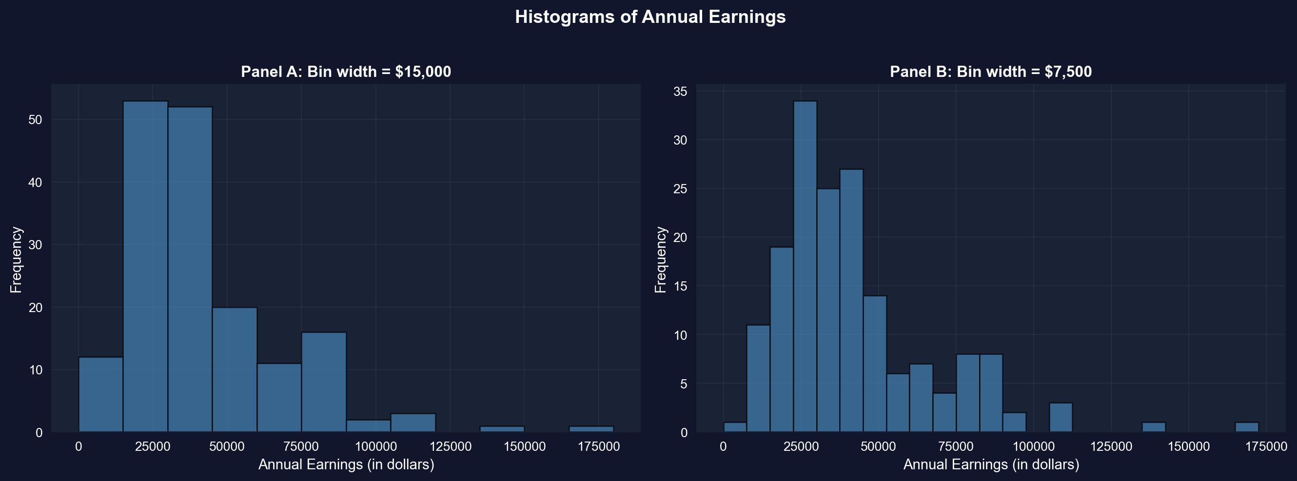 **Univariate data** consists of observations on a single variable—for example, annual earnings, individual income, or GDP over time. This chapter teaches you how to summarize and visualize such data effectively.