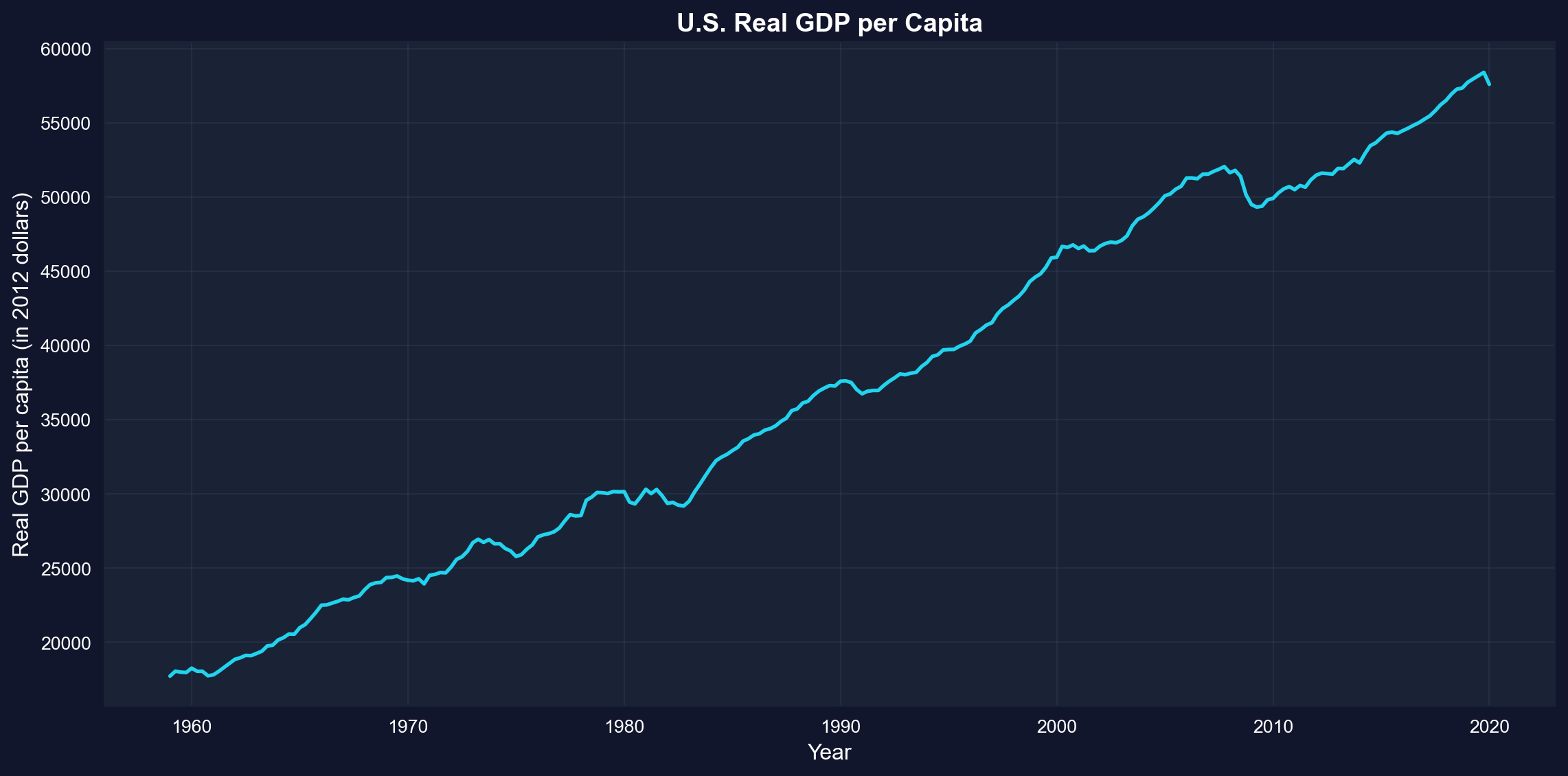 - **AED_REALGDPPC.DTA**: U.S. quarterly real GDP per capita from 1959 to 2020